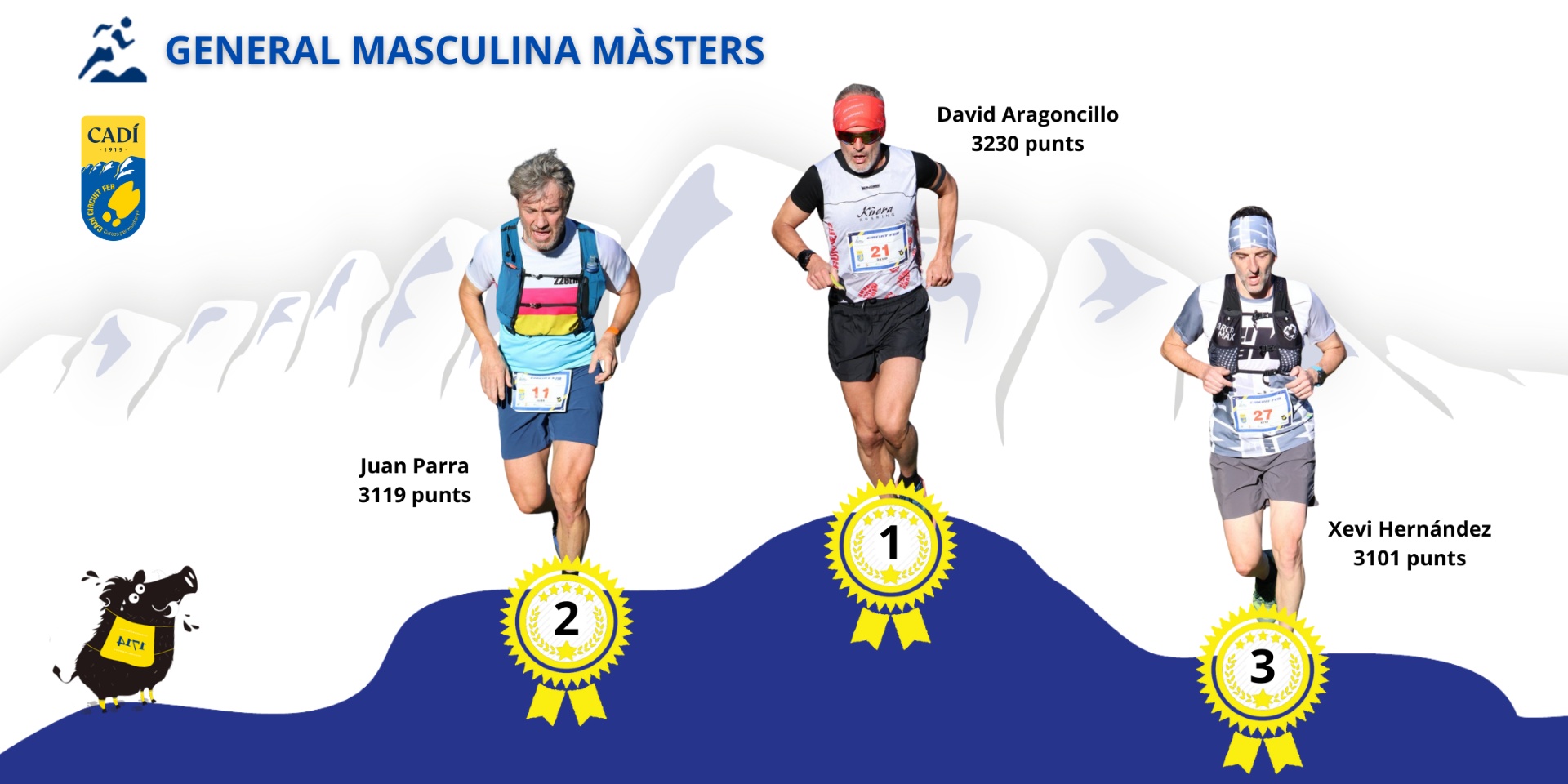 Classificacions 2025 Recordem com es calcularan les classificacions al final de temporada: General i per categories - puntuen NOMÉS les 9 curses amb millor puntuació (puntuació + participació) Verticals - puntuen TOTES les curses verticals Mitja/llarga distància - puntuen TOTES les curses de mitja/llarga distància Equips- puntuen TOTES les curses Circuit Fer PETIT- puntuen TOTES les curses GENERAL CIRCUIT FER VERTICALS MITJA/LLARGA DISTÀNCIA CIRCUIT FER PETIT FEMENINA(9 curses millor puntuació) AbsolutaXicsJúniorsSèniorsVeteransMàsters MASCULINA(9 curses millor puntuació) AbsolutaXicsJúniorsSèniorsVeteransMàsters FEMENINAJovesGeneral MASCULINAJovesGeneral FEMENINAJovesGeneral MASCULINAJovesGeneral FEMENINAMarrecsXics MASCULINAMarrecsXics EQUIPSAbsoluta Equips PETITAbsoluta