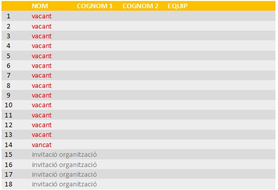 - vacant: els EQUIPS que tingueu una plaça vacant i vulgueu participar
